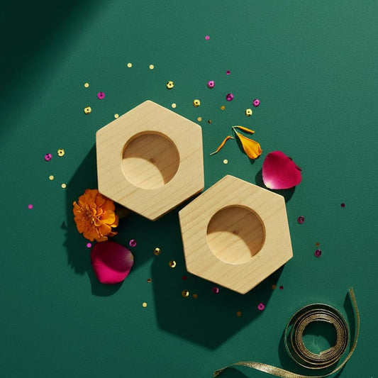 Eco-Friendly Tealight Candle Gift Set | 10 Scented Tealight Candles with 2 Free Hexagon Bamboo Candle Holders
